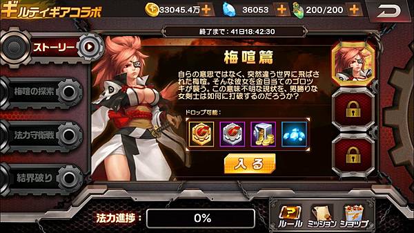 - 本次的聯合活動分成「故事(ストーリー)」、「梅喧的探索(梅喧の探索)」、「法力守衛戰(法力守衛戦)」、「突破結界(結界破り)」四種