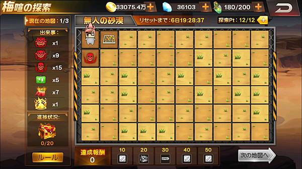 - 事件通關後,達成Pt會累加1Pt。達成Pt貯存至一定數量後,就會發生相對應的事件,即可前往下個地圖。進入下個地圖後,就無法再回到前一個地圖