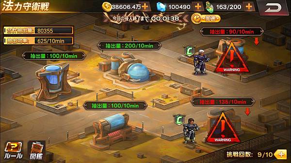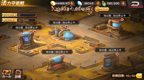 - 「法力守衛戦」設有五種抽取法力用的設施,各設施裡面有5個放置法力素材的鍋槽