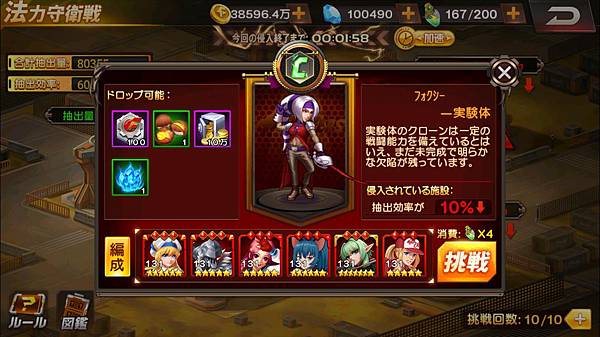 - 入侵者等級由上至下,依序為 U/S/A/B/C。抽取效率越高,出現高等級入侵者的機率越高。挑戰會從低等級開始依序挑戰,最後才會出現高等級